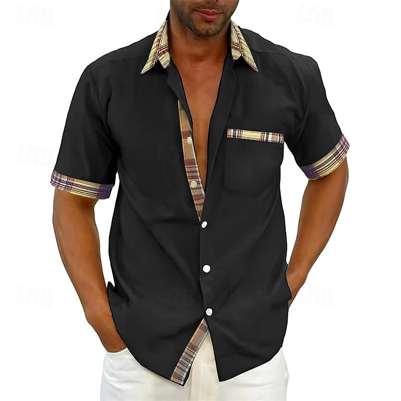 More information about Men's Shirt Summer Shirt Button Up Shirt Black White Pink Red Purple Short Sleeve Color Block Plaid / Check Turndown Street Casual Button-Down Clothing Apparel Cotton Cotton Blend Sports Fashion