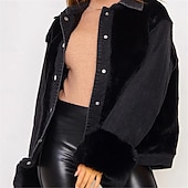 More information about Women's Sherpa Jacket Denim Jacket Outdoor Street Daily Wear Fall Winter Regular Coat Regular Fit Thermal Warm Breathable Stylish Casual Jacket Long Sleeve Solid Color with Pockets Faux Fur Trim