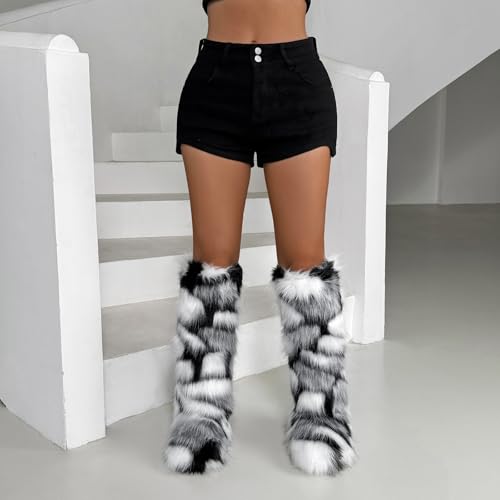 • STYLISH UPPER:Women's knee-high fur boots are designed with a round toe and high legs, and are made from faux fur to add a touch of style to your outfit. The furry design gives a furry and atmospheric look and is suitable for women of most ages