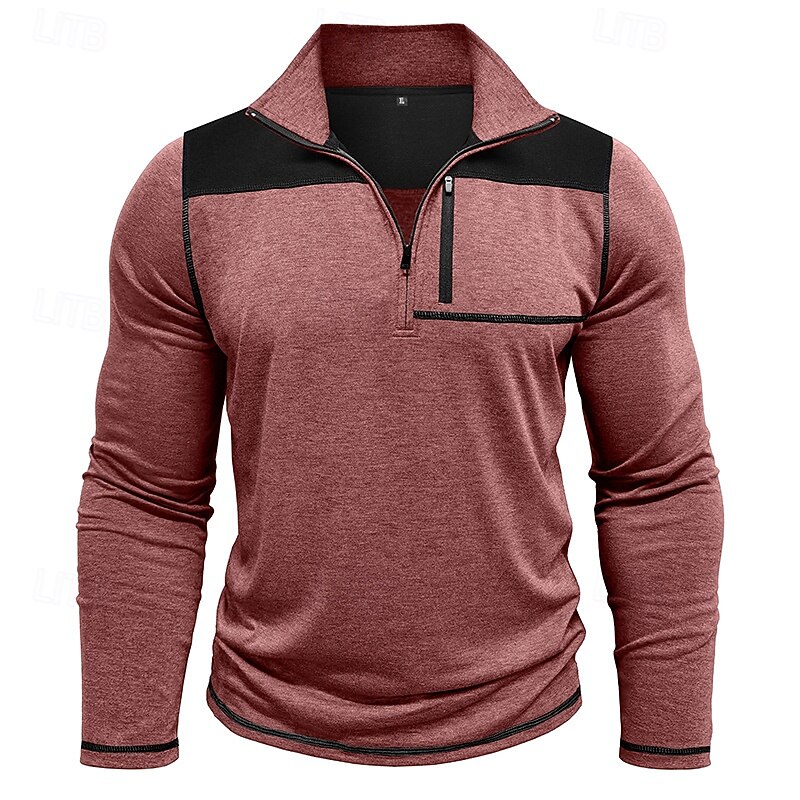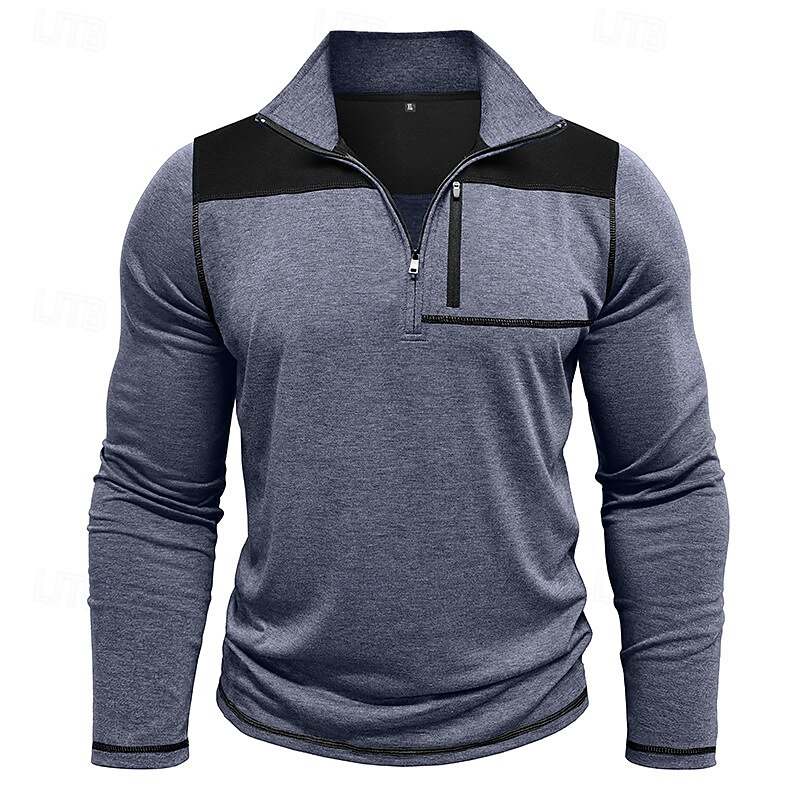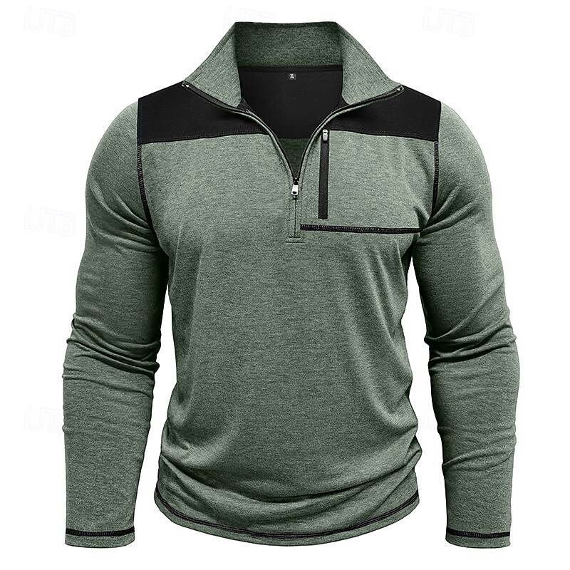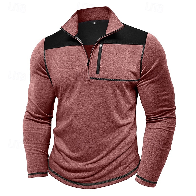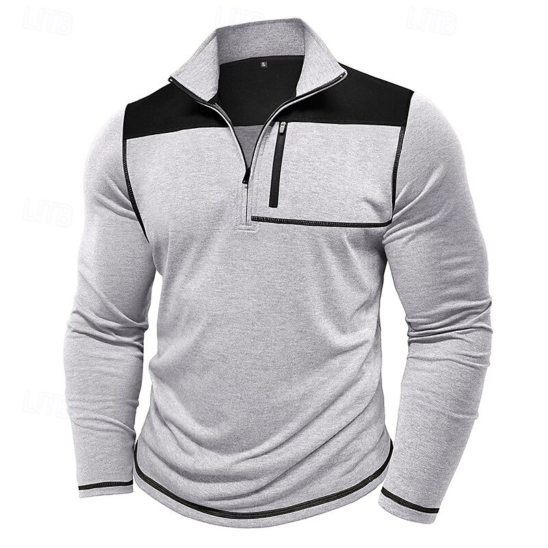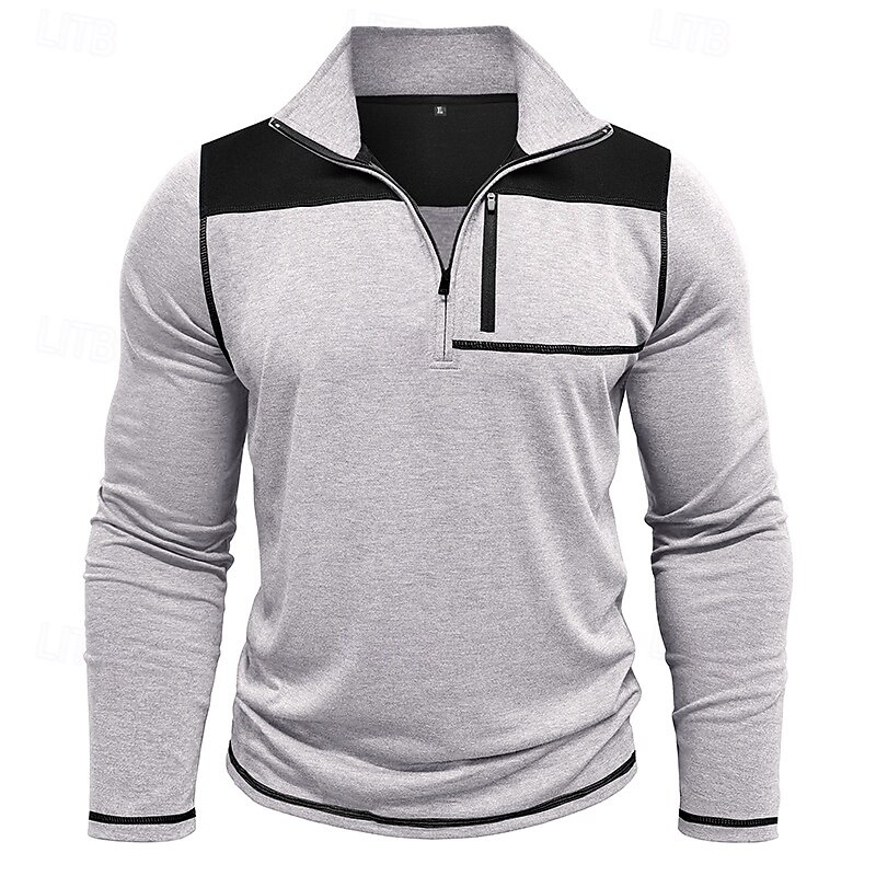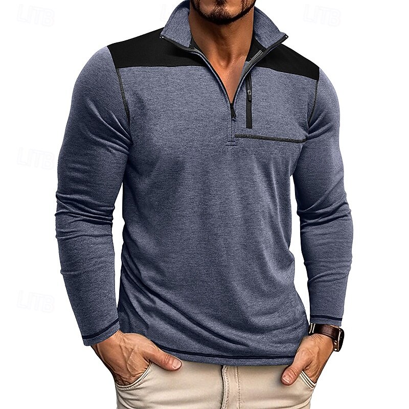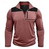 More information about Men's Polo Shirts Quarter Zip Polo Daily Wear Date Quarter Zip Long Sleeve Fashion Basic Color Block Patchwork Zipper Spring Fall Regular Fit Wine Royal Blue Green Khaki Light Grey Dark Gray Polo