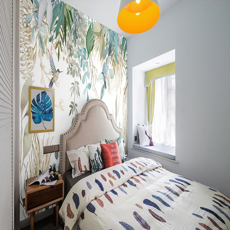 Cool Wallpapers Wall Mural Flower Floral Wallpaper Wall Sticker Covering Print Peel and Stick Removable Green Tropical Palm Leaf Canvas Home Décor 8
