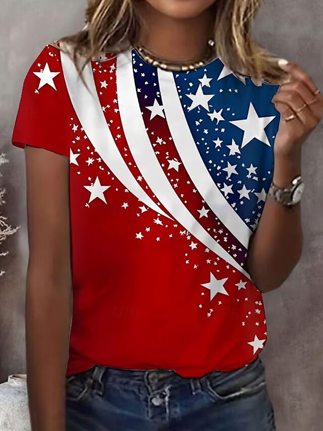 HOT ! Women's Patriotic T Shirt Graphic Flag Vintage Stylish Classic Short Sleeve Crew Neck Regular Tops Daily Weekend Print Red Summer