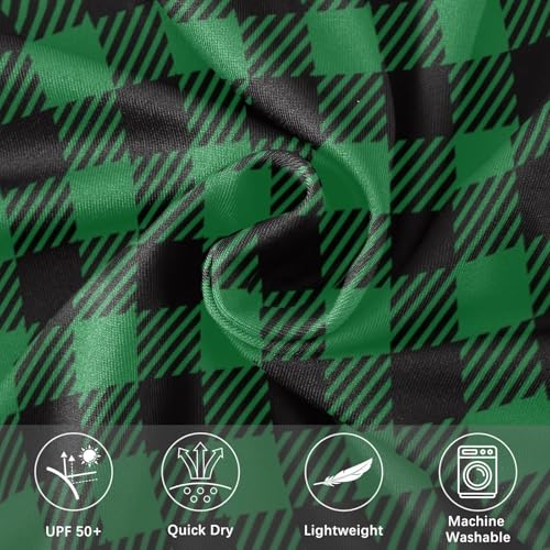 Green Black Small Plaid UPF 50+ Sun Shirts for Men Fishing Round Neck Men's Sun Shirt Long Sleeve Outdoors 6