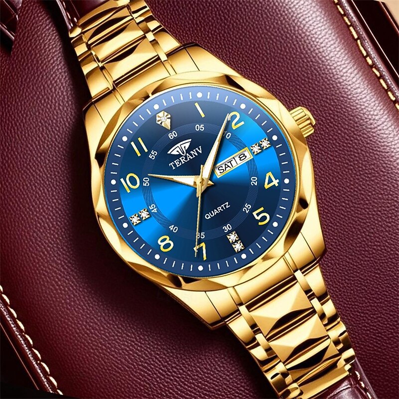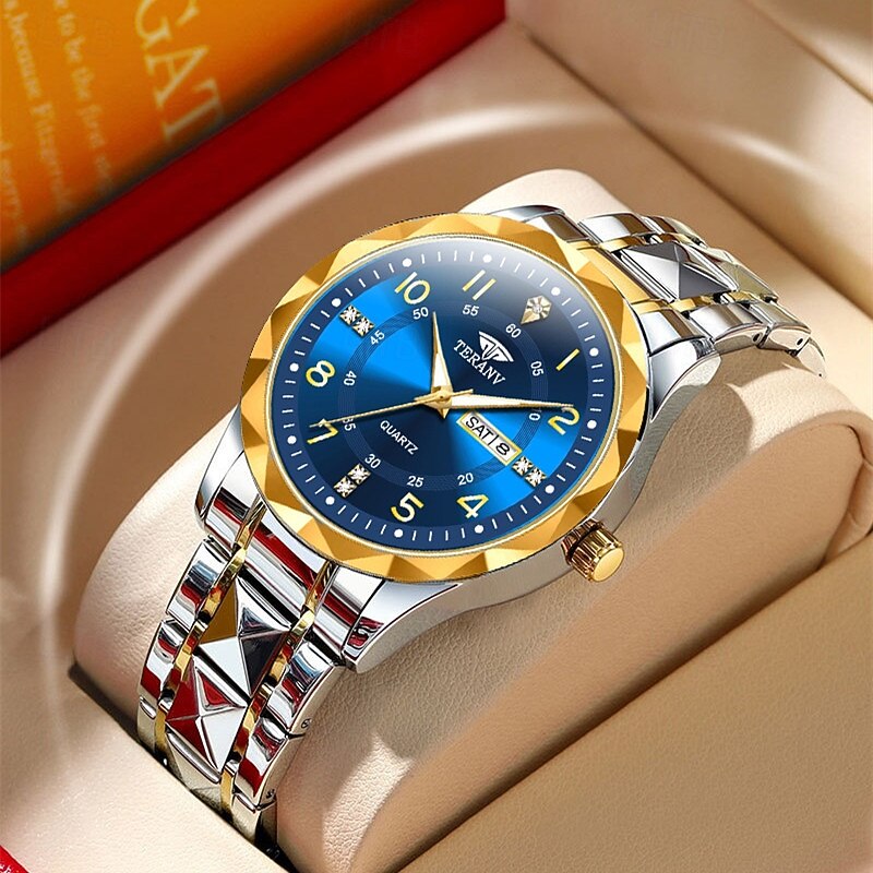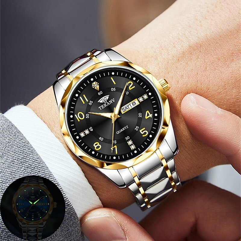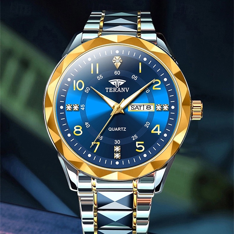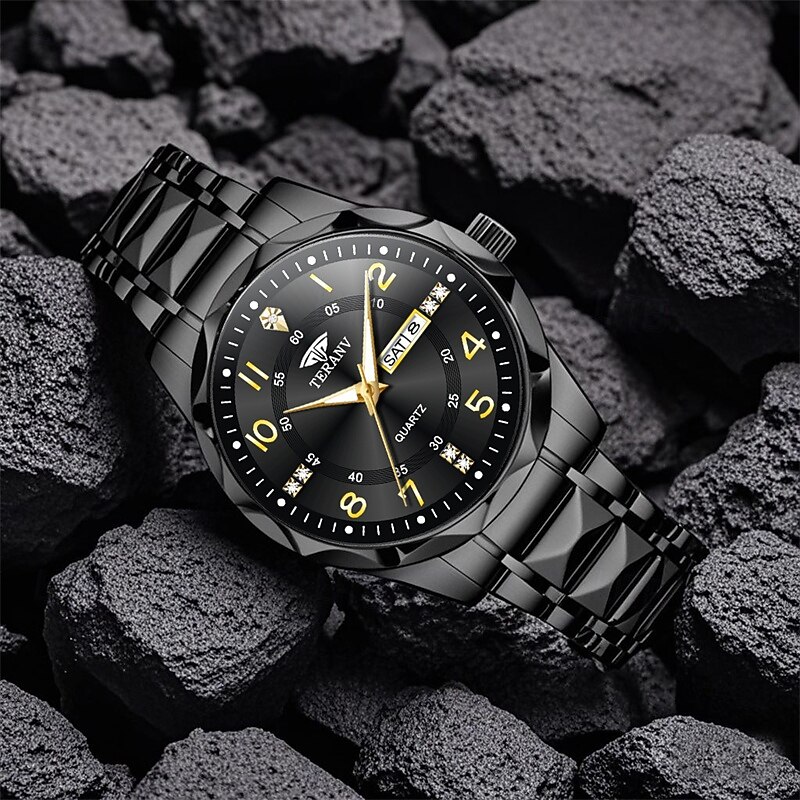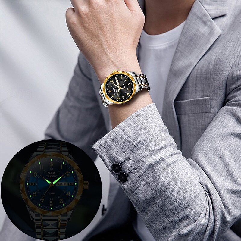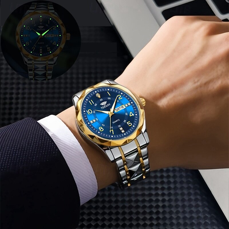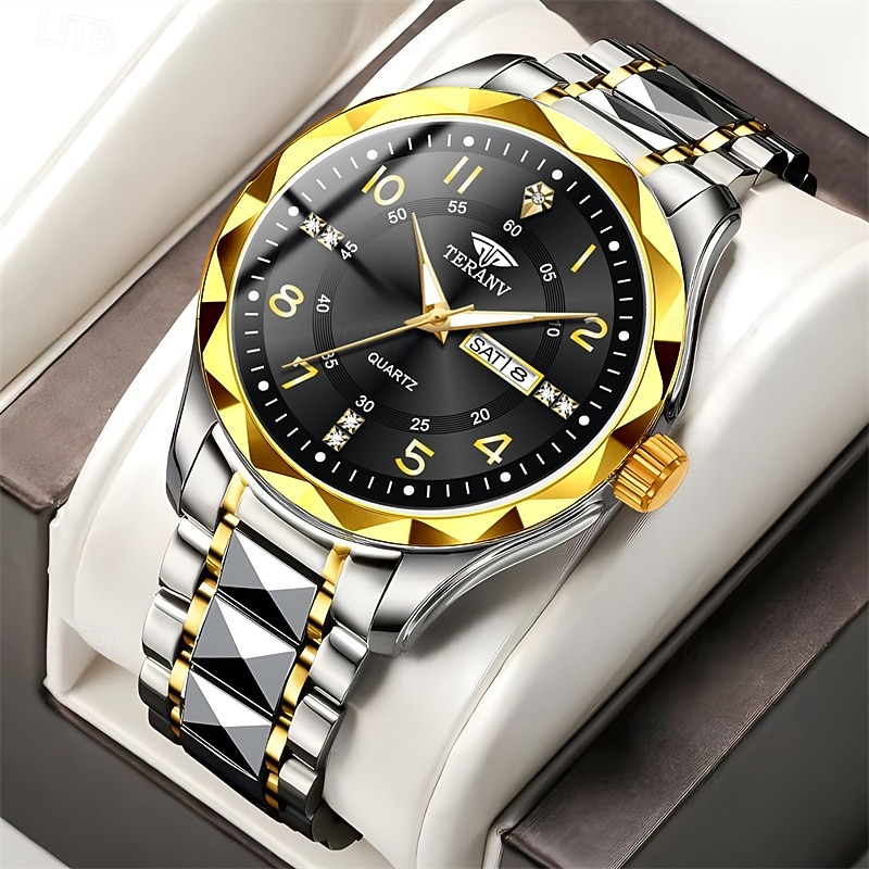 More information about A New Digital Diamond-Shaped Dial Elegant Men'S Quartz Watch - Ipx7 Waterproof Rating Luminous Date And Day Display Alloy Strap - Fashionable And Trendy Versatile For Casual Wear Ideal Gift For Li