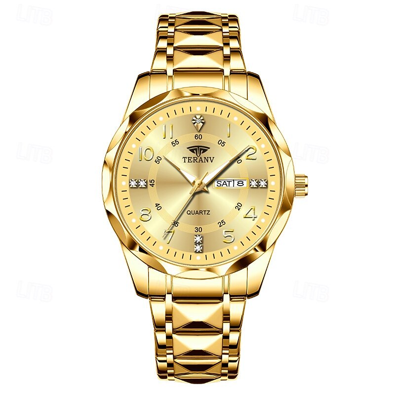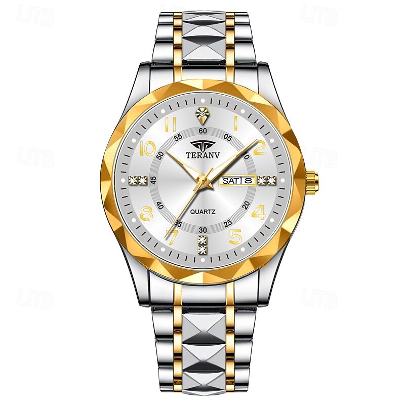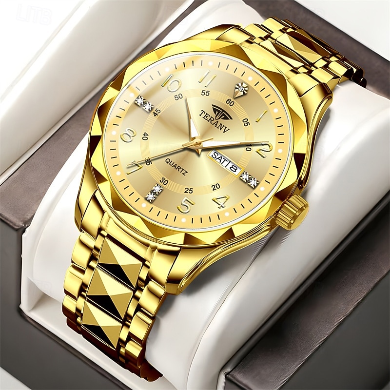 A New Digital Diamond-Shaped Dial Elegant Men'S Quartz Watch - Ipx7 Waterproof Rating Luminous Date And Day Display Alloy Strap - Fashionable And Trendy Versatile For Casual Wear Ideal Gift For Li 31