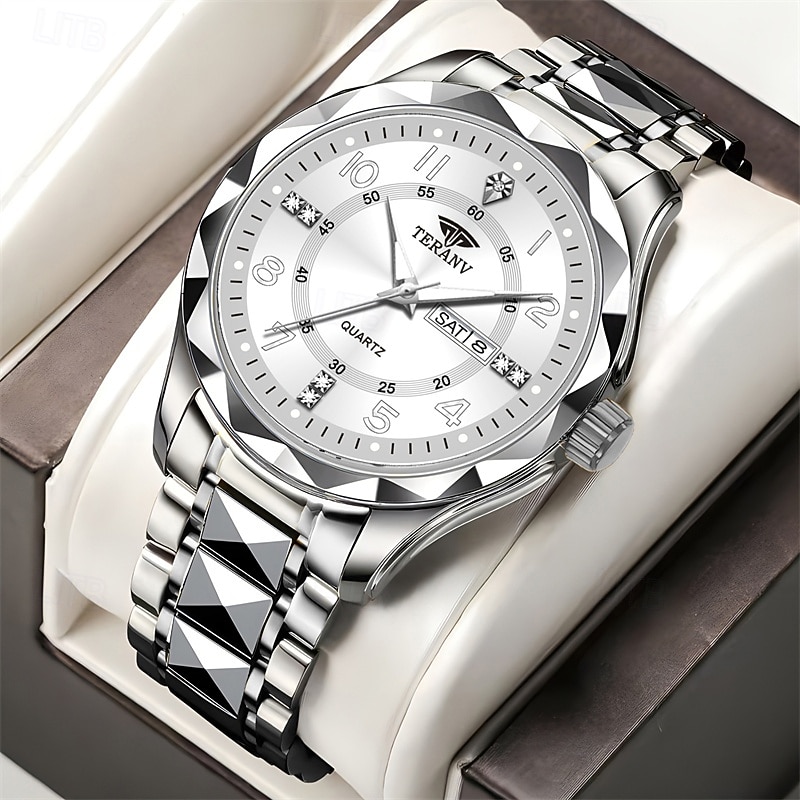 A New Digital Diamond-Shaped Dial Elegant Men'S Quartz Watch - Ipx7 Waterproof Rating Luminous Date And Day Display Alloy Strap - Fashionable And Trendy Versatile For Casual Wear Ideal Gift For Li 27