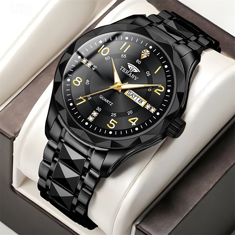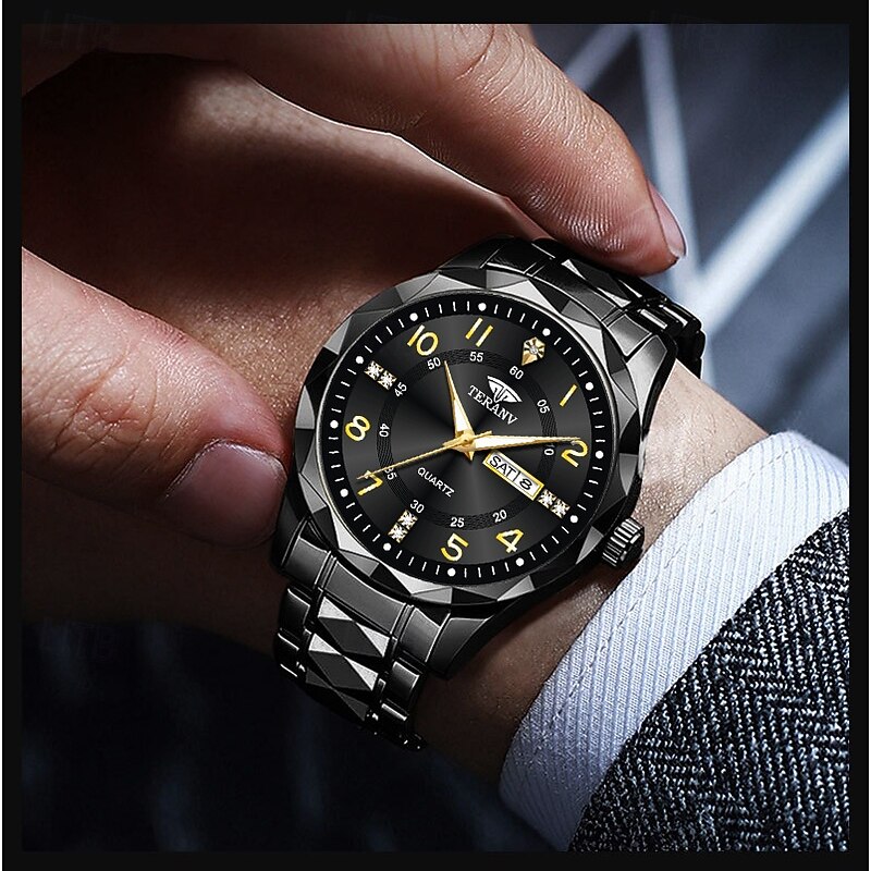 A New Digital Diamond-Shaped Dial Elegant Men'S Quartz Watch - Ipx7 Waterproof Rating Luminous Date And Day Display Alloy Strap - Fashionable And Trendy Versatile For Casual Wear Ideal Gift For Li 13