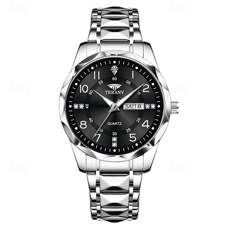 A New Digital Diamond-Shaped Dial Elegant Men'S Quartz Watch - Ipx7 Waterproof Rating Luminous Date And Day Display Alloy Strap - Fashionable And Trendy Versatile For Casual Wear Ideal Gift For Li 25
