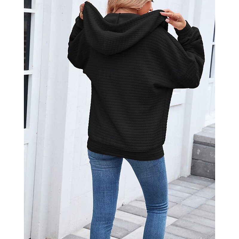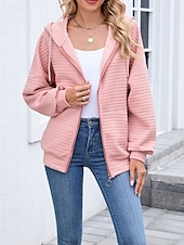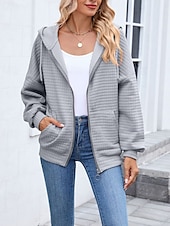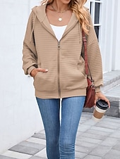 More information about Women's Texture Sweatshirt Waffle Sweatshirt Zip Up Hoodies Plain Casual Long Sleeve Hooded Regular Tops Street Holiday Going out Zipper Pocket Black Pink Brown Khaki Dark Gray Fall Winter