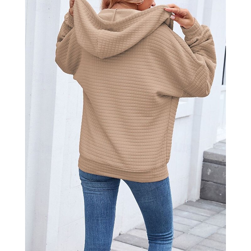 Women's Texture Sweatshirt Waffle Sweatshirt  Zip Up Hoodies Plain Casual Long Sleeve Hooded Regular Tops Street Holiday Going out Zipper Pocket Black Pink Brown Khaki Dark Gray Fall Winter 17