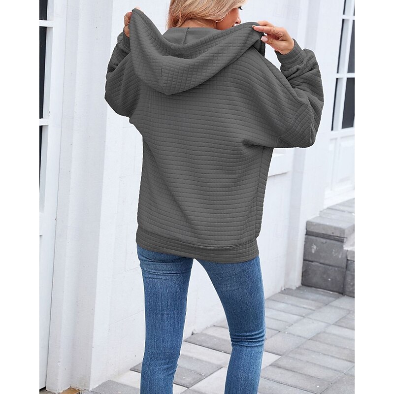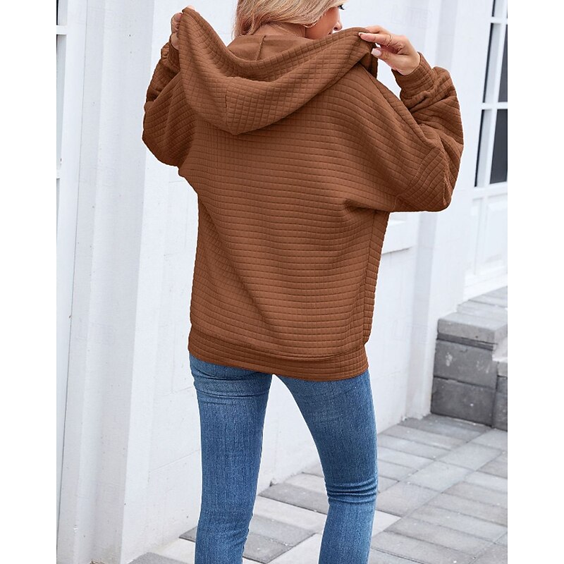 Women's Texture Sweatshirt Waffle Sweatshirt  Zip Up Hoodies Plain Casual Long Sleeve Hooded Regular Tops Street Holiday Going out Zipper Pocket Black Pink Brown Khaki Dark Gray Fall Winter 21