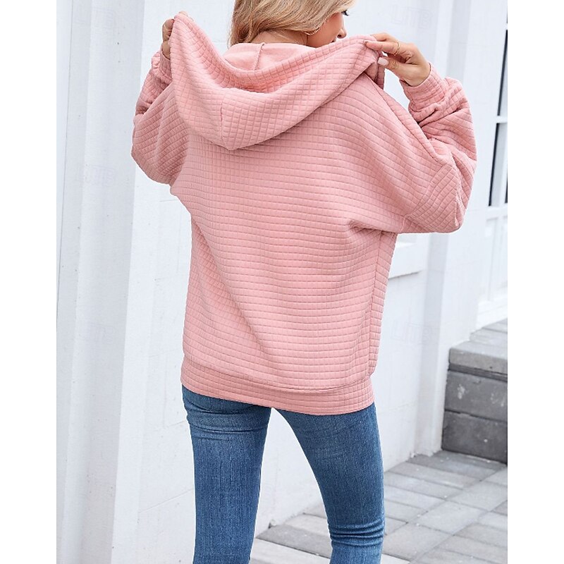 Women's Texture Sweatshirt Waffle Sweatshirt  Zip Up Hoodies Plain Casual Long Sleeve Hooded Regular Tops Street Holiday Going out Zipper Pocket Black Pink Brown Khaki Dark Gray Fall Winter 2