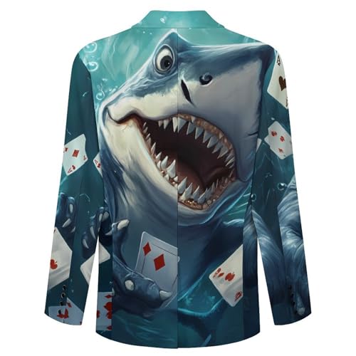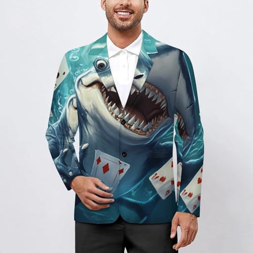 Poker Card Shark Mens Suit Jacket Lapel Blazers V Neck Button Business Coat Tuxedo for Wedding Party 1