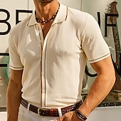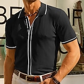 More information about Men's Business Polo Golf Polo Business Casual Lapel Short Sleeve Office Solid / Plain Color Button Front Summer Black Sky Blue Apricot Business Polo