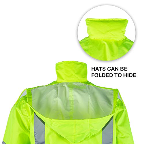 FONIRRA Class 3 High Visibility Rain Suit With Collapsible Hood Lime Reflective Safety Waterproof Worker Jacket & Pants (S/M Yellow) 5