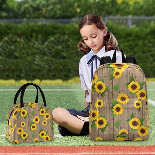 Kids Bookbags, Sunflowers Rustic Wooden Insulated Waterproof Backpack, Book Bags with Lunch Box 1