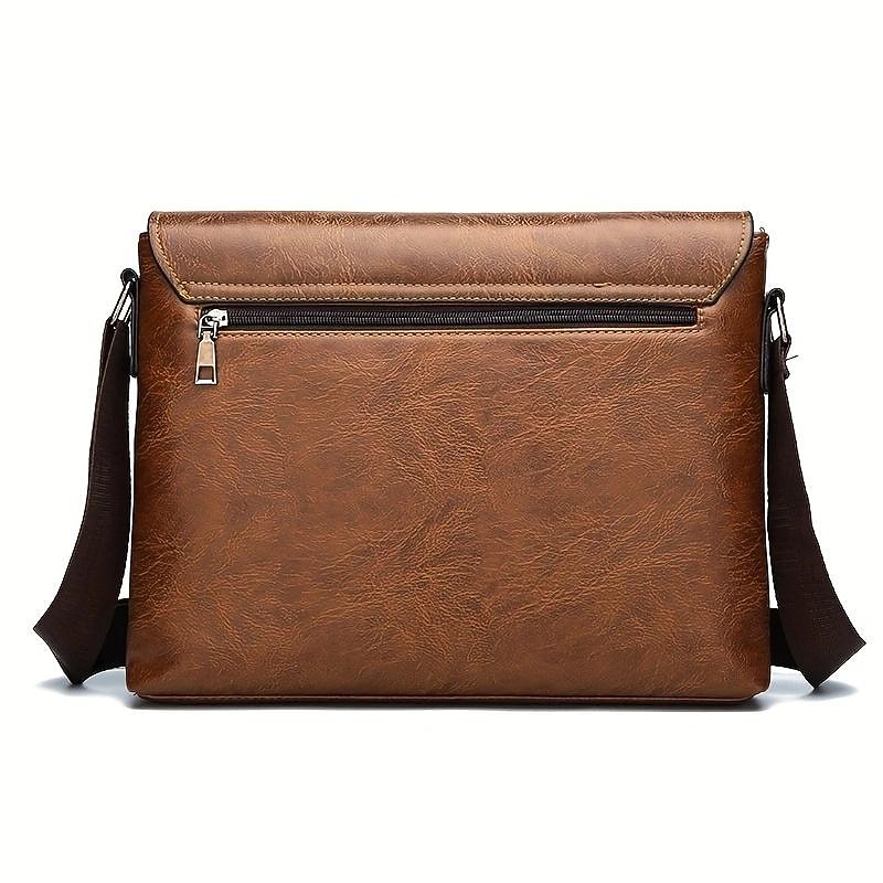 Men's Brown Faux Leather Messenger Bag - Classic Crossbody Design with Adjustable Strap, Perfect for Work or Travel 10