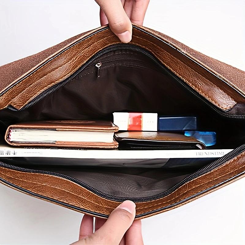 Men's Brown Faux Leather Messenger Bag - Classic Crossbody Design with Adjustable Strap, Perfect for Work or Travel 12
