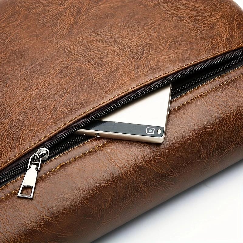 Men's Brown Faux Leather Messenger Bag - Classic Crossbody Design with Adjustable Strap, Perfect for Work or Travel 11