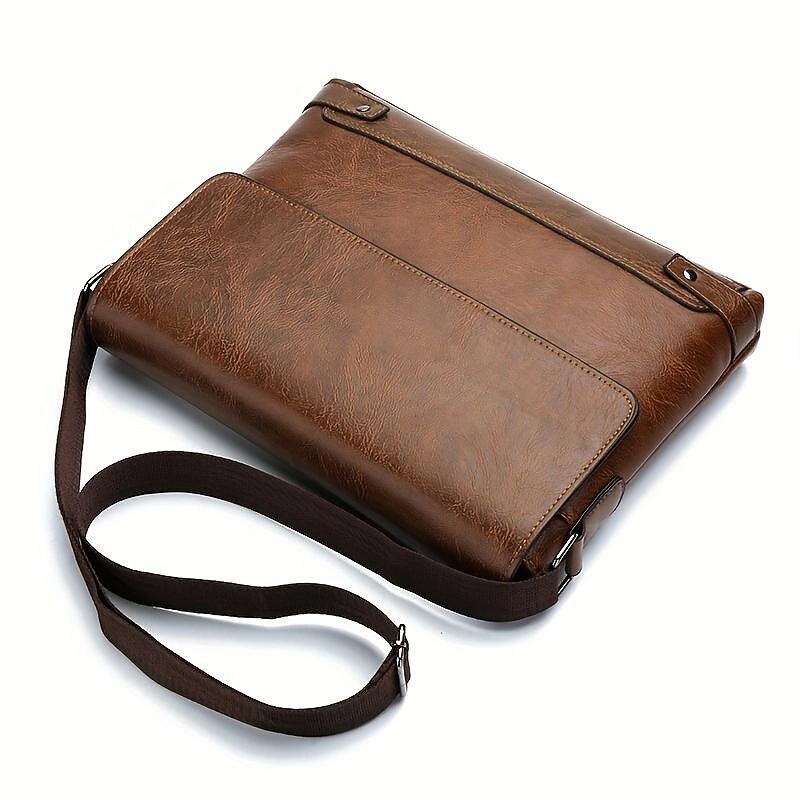 Men's Brown Faux Leather Messenger Bag - Classic Crossbody Design with Adjustable Strap, Perfect for Work or Travel 1
