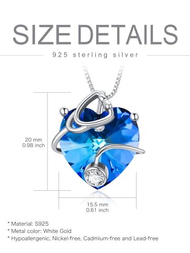 • 【Silver 925 Sapphire Necklace for Women】The necklace is made up of sterling silver and plated with white gold and set with a heart-shaped crystal birthstone center stone and a 4mm 5A cubic zirconia; Lead-free & nickle-free, hypoallergenic and no harm to health. Excellent polishing technology makes every detail smooth and bright.