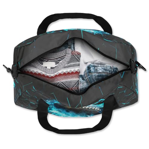 Gym Travel Duffle Bag for Boys - Blue 3D Football Kids Overnighter Weekend Bag with Front Zipper Pocket for School Practice, Teens Carry-On Size Sleepover Bags 5