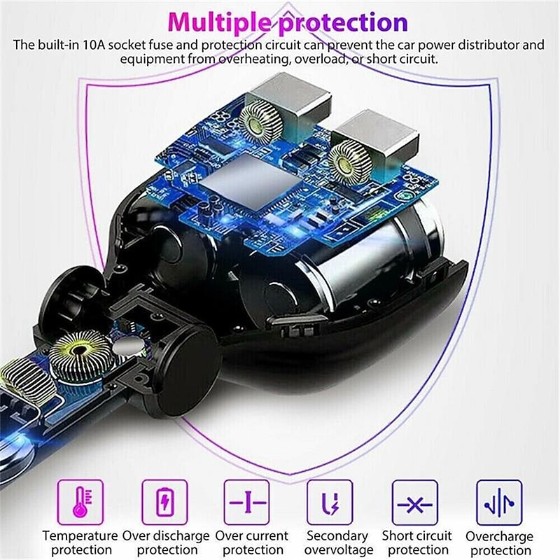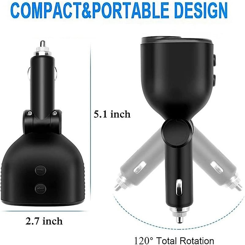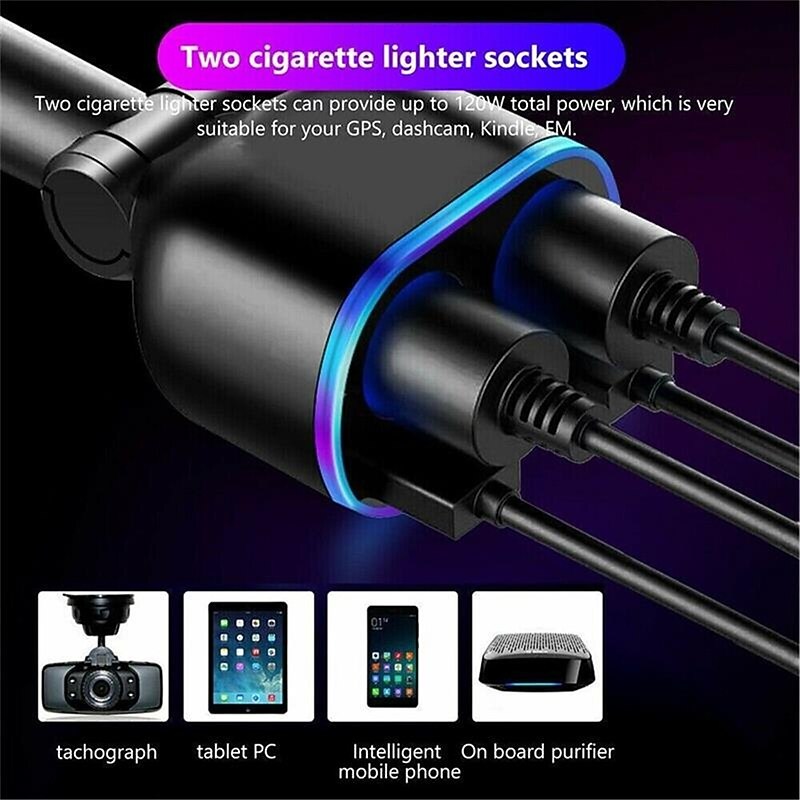 DC 12V LED 2 Way Car Cigarette Lighter Socket Splitter Dual USB Charger Adapter 6