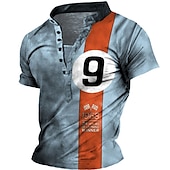 Highlights [Fabric]: This men's t-shirt is crafted from a high-quality polyester blend, offering comfort and breathability during the summer season. The micro-elastic fabric ensures a relaxed fit, perfect for daily wear and outdoor activities. [Style and Fit]: Designed with a regular fit, this vintage-style tee features a classic stand collar and a short button placket, offering a casual yet stylish appearance. The micro-elasticity of the material provides ease of movement, ideal for various activities. [Design Highlights]: The shirt boasts a bold graphic and color block design, accentuated by the iconic number "9" and the statement "1968 24 Hours of Le Mans Winner," which adds a touch of historic motorsport charm. The distressed light blue base with an orange stripe creates a striking visual appeal, while the 3D print technique enhances the vividness of the graphics. [Occasions]: This versatile t-shirt is perfect for a range of occasions, including daily casual outings, sports events, and outdoor activities. Its designer aesthetic and comfortable fit make it suitable for a relaxed day out or an active day under the sun. [Size Range]: Available in a wide variety of sizes, from S to 5XL, this shirt caters to a diverse audience, providing options for both standard and plus sizes.