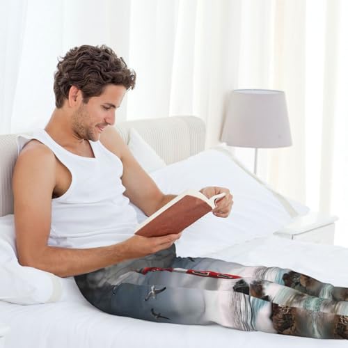 HOT ! VOSERY 3d Lighthouse in the Surf Mens Pajama Pants, Soft Sleep Pj Pants for Men, Mens Lounge Pajama Bottoms with Pockets