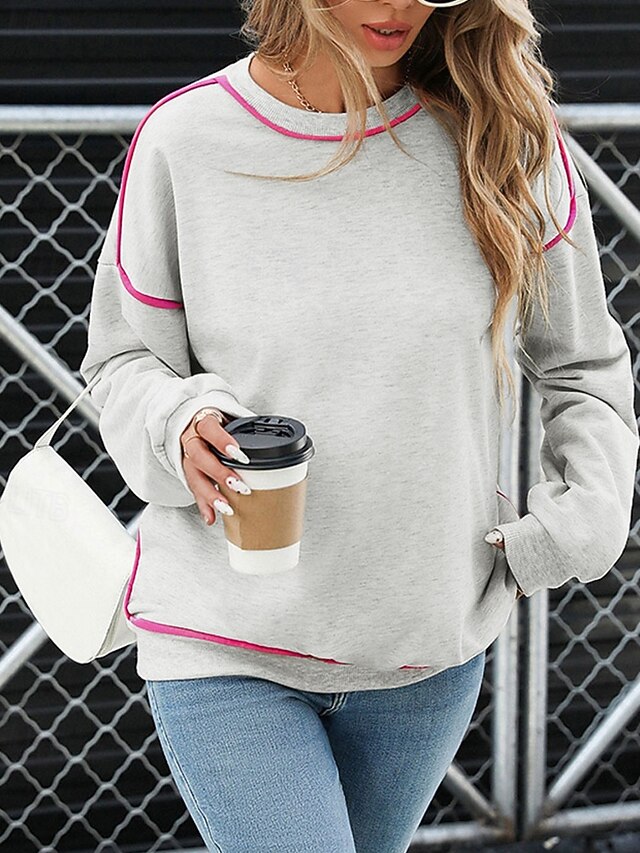 More information about Women's Pullover Sweatshirt Sweatshirts Color Block Streetwear Casual Long Sleeve Crew Neck Regular Tops Street Going out Patchwork Light Grey Fall Winter