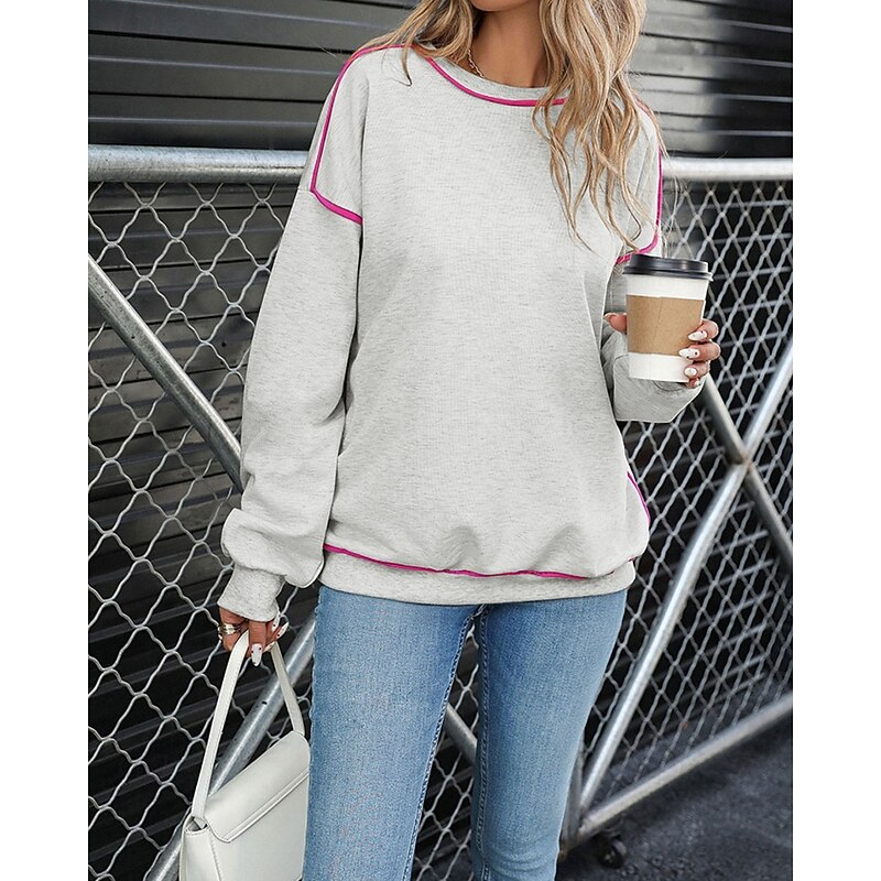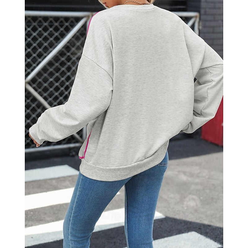 Women's Pullover Sweatshirt Sweatshirts Color Block Streetwear Casual Long Sleeve Crew Neck Regular Tops Street Going out Patchwork Light Grey Fall Winter 1