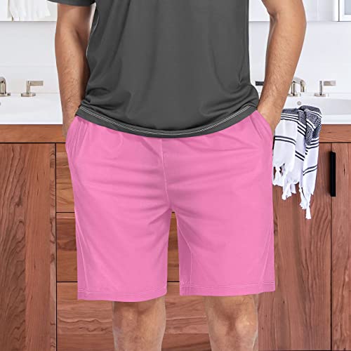 Hot Pink Pajama Shorts for Men,Men's Pajama Bottoms,Sleepwear S 7