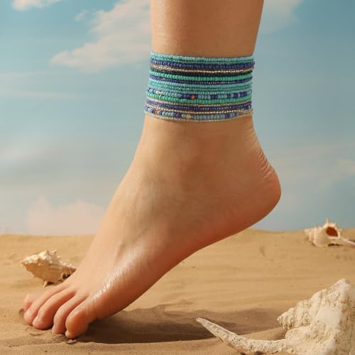 HOT ! 18Pcs Colorful Bohemia Seed Beaded Bracelets Handmade Adjustable Stackable Rainbow Beaded Stretch Bracelet Anket Multilayer Vaction Elastic Bracelet for Women Summer Beach Boho Jewelry Gifts