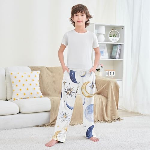 ZZXXB Moon and Star Boys Long Pants Soft Trousers Elastic Waist Kids Lounge Bottoms with Pockets S-XL 1