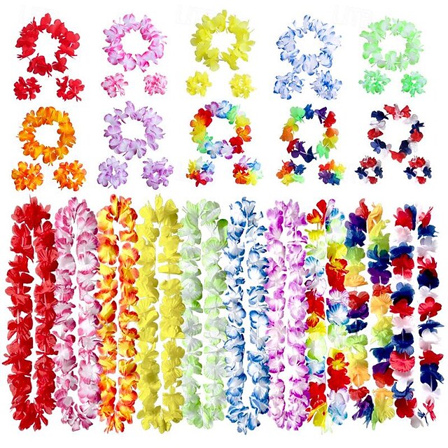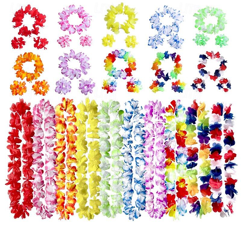 HOT ! 40PCS Classic Flower Ring Combination Set Beach Vacation Decoration Colorful Petal Necklace Festival Party Accessories