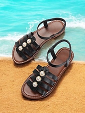 More information about Black Gladiator Sandals with Imitation Pearl Embellishments for Women – Elegant Summer Footwear
