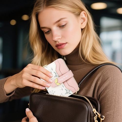 HOT ! Small Wallet Womens Pink Flower Cute Wallet's Women Mini Wallets for Ladies Slim Change Purse for Ladies Bifold Wallet Womens With Zipper Coin Pocket Purses Card Holder for Women