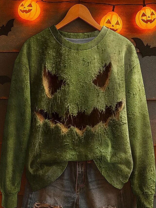More information about Halloween Women's Pullover Monster Graphic Casual Long Sleeve Crew Neck Regular Tops Street Dailywear Casual Print Purple Green Khaki Gray Fall Winter