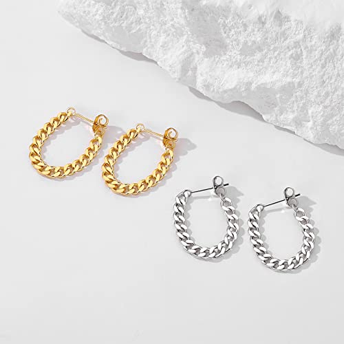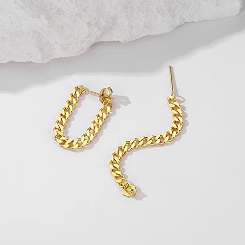 • PREMIUM MATERIAL: The chain link earrings are made of S925 sterling silver with 18k gold plating, will not deform or tarnish easily