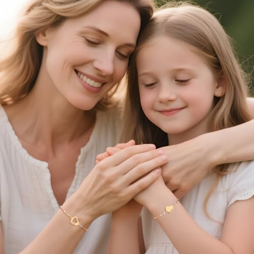 • Premium 18K Gold Plated Stainless Steel - mom bracelet/daughter bracelet/mom and daughter bracelets/charm bracelets for girls,Hypoallergenic, tarnish-resistant, and waterproof for daily wear. Perfect for sensitive skin and long-lasting shine.