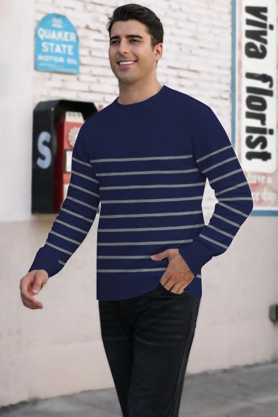 ETCYY NEW Men's Striped Sweaters Crew Neck Slim Fit Long Sleeve Pullover Sweater for Business or Casual Dressy Wear 1