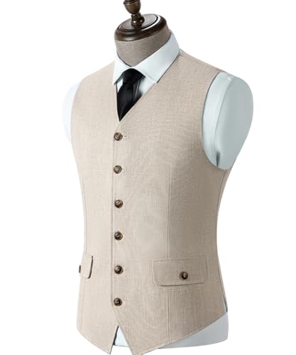 Linen Mens Suit Vest Business Casual Beach Slim Fit Wedding Waistcoat Linen Vest Summer Groomsmen 6