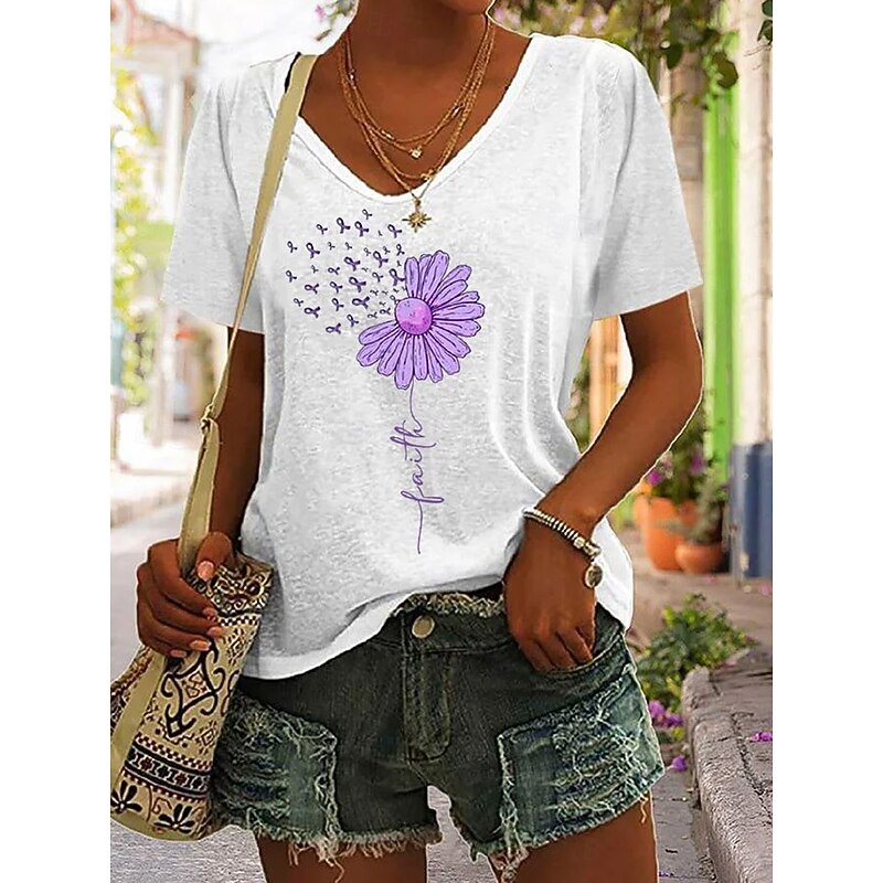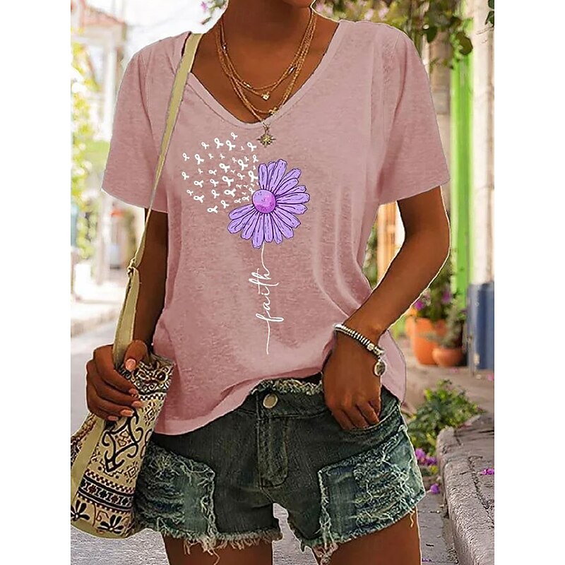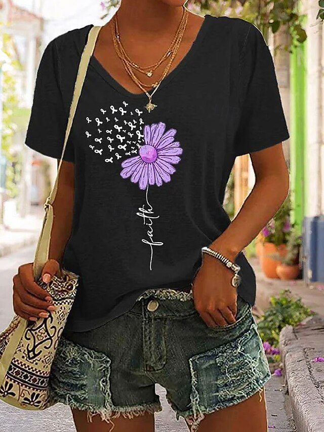 More information about Women's T Shirt Floral Graphic Letter Bohemia Vintage Stylish Short Sleeve V Neck Regular Tops Daily Going out Weekend Print Black White Pink Purple Green Summer Spring