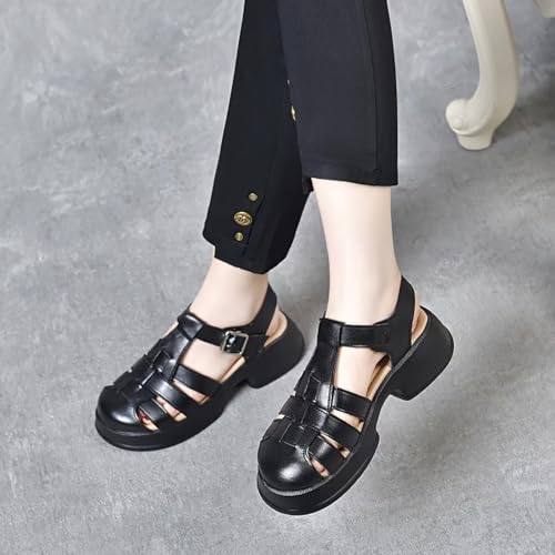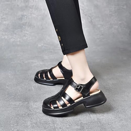 Women'S Leather Braid Caged Platform Fisherman Sandals,Summer Closed Round Toe Adjustable Ankle Strap Hollow Out Chunky Gladiator Sandals Casual Beach Y2k Sandals 6
