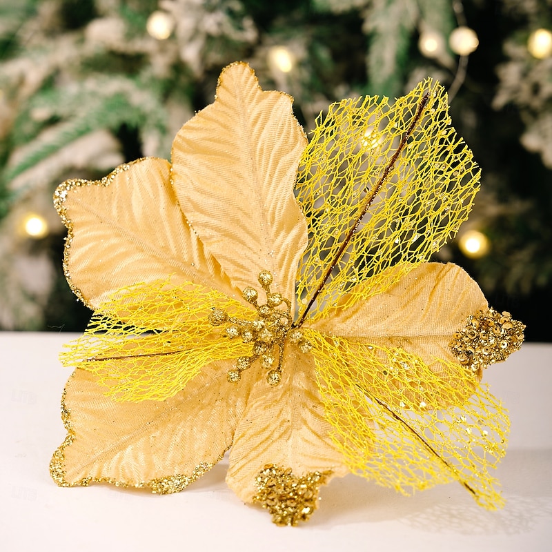 $12.49 - 4 Pack Christmas Poinsettia Artificial Flowers Tree Ornament Gold & Red Faux Holiday Flowers with Maple Leaves for Christmas Tree, Wreaths, Centerpieces, DIY Crafts 2025. Shop for cheap Ornaments online? Buy at lightinthebox.com on sale today!