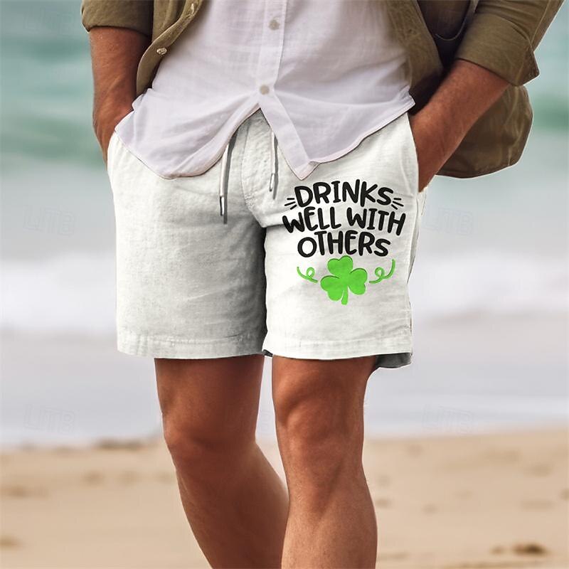 HOT ! Men's Four Leaf Clover Shorts Summer Shorts Beach Shorts Mid Waist Hawaiian Casual Holiday St. Patrick's Day Drawstring Elastic Waist Print Designer Clothing Apparel