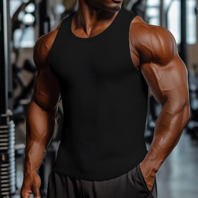 HOT ! Men's Waffle Tank Top Vest Top Sleeveless Shirt Sleeveless Crewneck Summer Plain Fashion Designer Muscle Outdoor Going out Gym Black White Dark Red Top Tee for Men