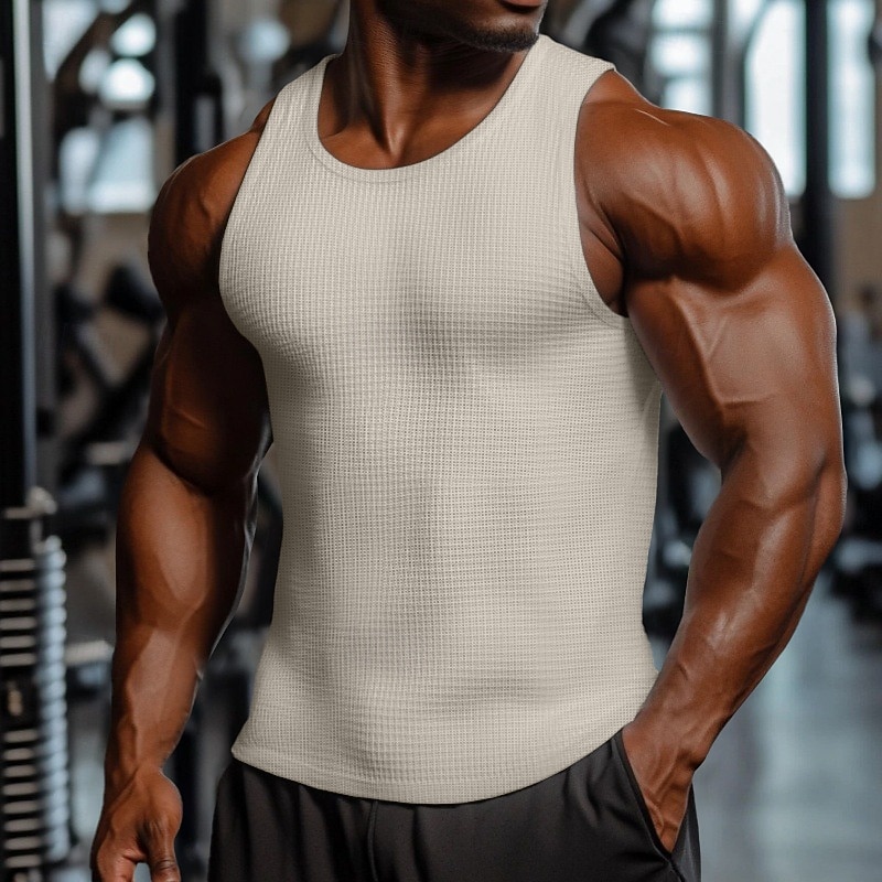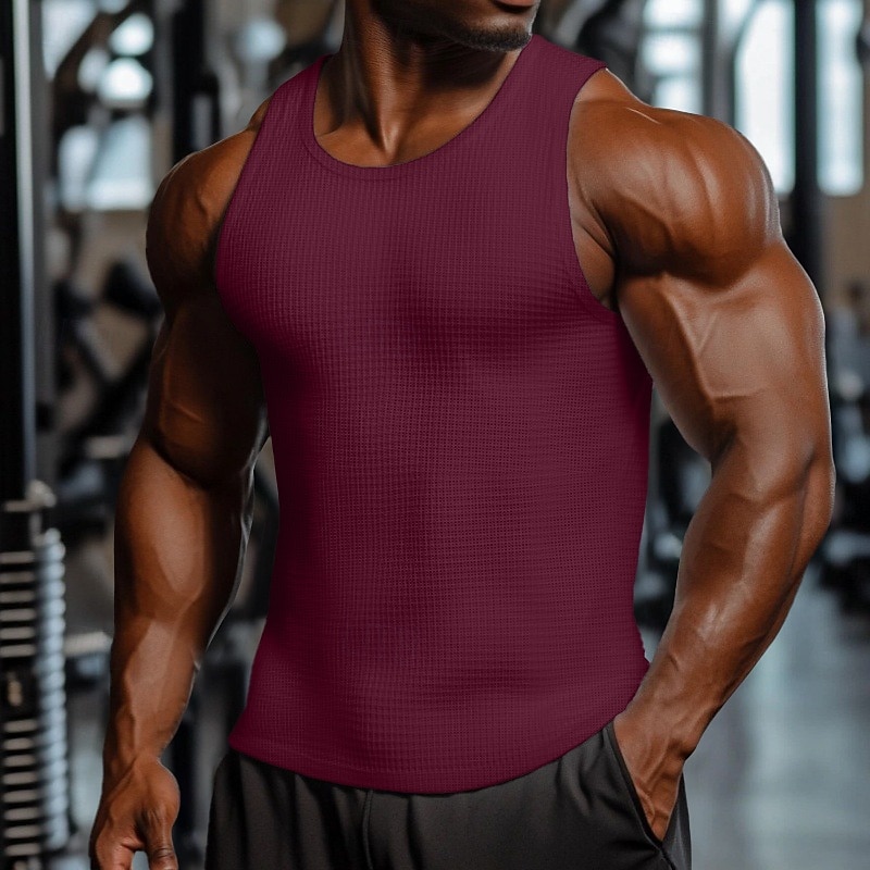 More information about Men's Waffle Tank Top Vest Top Sleeveless Shirt Sleeveless Crewneck Summer Plain Fashion Designer Muscle Outdoor Going out Gym Black White Dark Red Top Tee for Men