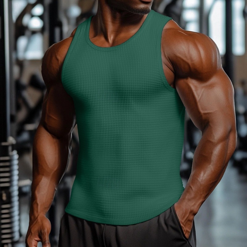 Men's Waffle Tank Top Vest Top Sleeveless Shirt Sleeveless Crewneck Summer Plain Fashion Designer Muscle Outdoor Going out Gym Black White Dark Red Top Tee for Men 7