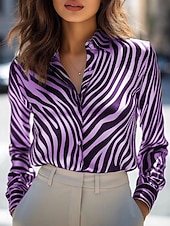 More information about Women's Work Shirt Graphic Geometric Elegant Stylish Modern Long Sleeve Shirt Collar Regular Tops Work Party Evening Wear Daily Silver Blue Purple Gold Green Fall Winter Spring, Fall, Winter, Summer